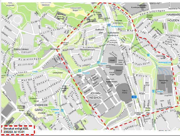 Se kartorna nedan för övervakade områden och tidpunkter. Särskilt beslut om övervakningen har fattats av Polismyndigheten och det grundar sig främst på bestämmelser i kamerabevakningslagen.